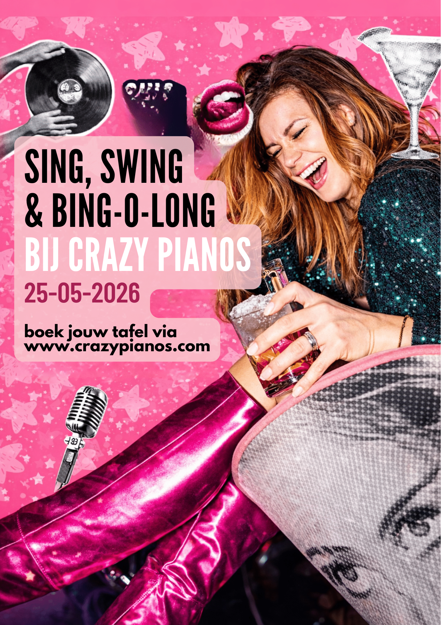 Het is weer zover… de Sing, Swing & Bing-O-Long komt terug naar Crazy Pianos op Tweede Pinksterdag! Bereid je voor op een middag vol gezelligheid, heerlijk eten, verfrissende drankjes en de allerleukste hits tijdens de meest muzikale bingo ooit.